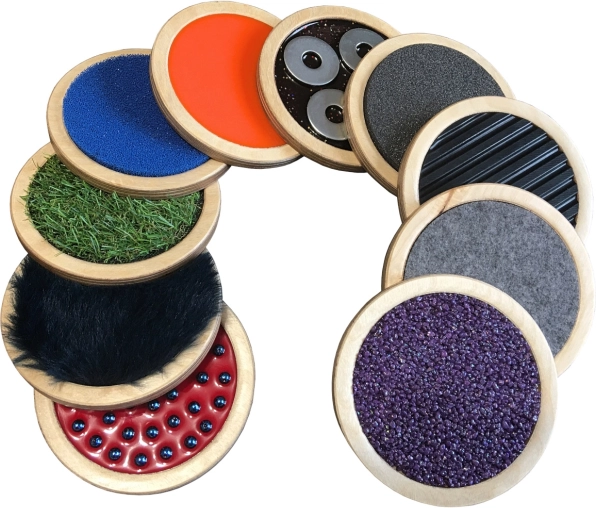 Souprava obsahuje mnoho typů povrchů, jako je plsť, silikonová pěna, umělá tráva a další, které pomáhají rozvíjet hmat a jemnou motoriku.