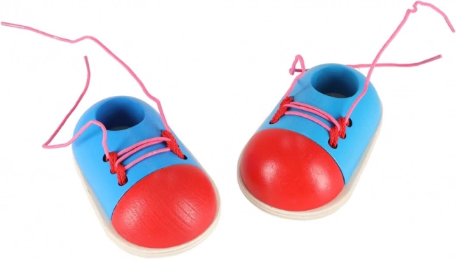 Dřevěné botky na učení zavazování tkaniček, 2 ks