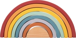 Tato duha ze dřeva poskytuje skvělou příležitost pro děti rozvíjet svou představivost a motorické dovednosti. Obsahuje 8 barevných oblouků a dřevěnou kuličku, která může sloužit jako výuková pomůcka pro pochopení rozměrů a barev. Hračka je vyrobena v souladu s Montessori pedagogikou a je ideální pro volnou hru.