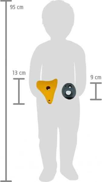 Úchyty jsou vhodné pro děti, povrch usnadňuje uchopení a podporuje rozvoj síly, rovnováhy a vytrvalosti. Můžete je kombinovat s dalšími produkty z řady Adventure pro vytvoření vlastní gymnastické tělocvičny.