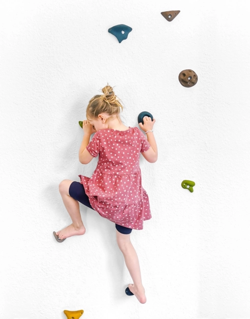 Úchyty jsou navrženy tak, aby se neotáčely, čímž zajišťují maximální bezpečnost pro malé horolezce.