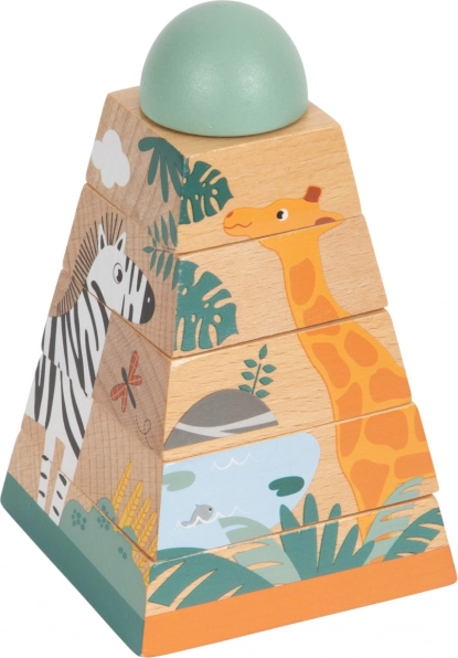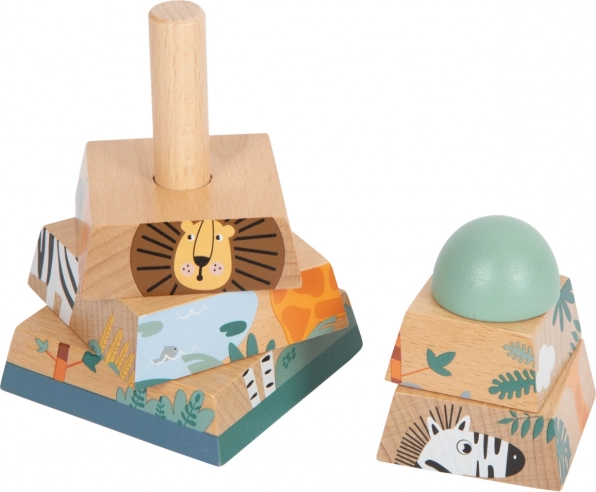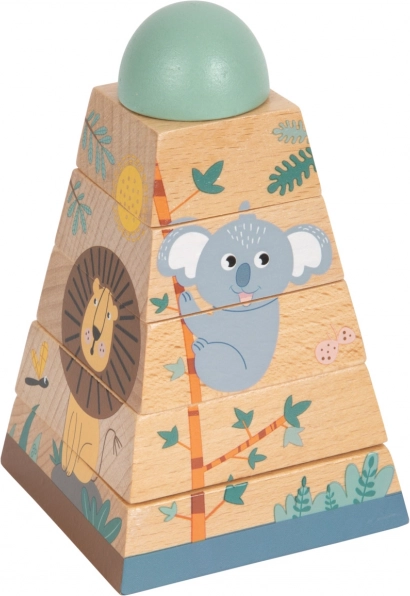 Tato dřevěná nasazovací věž je navržena pro rozvoj jemné motoriky a prostorového vnímání dětí. Skládáním barevných bloků děti objevují přátelská zvířátka safari, jako jsou žirafa, zebra, koala a lev.