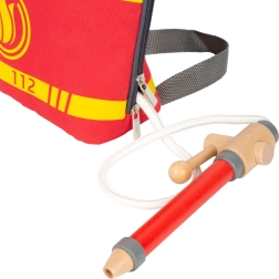 Vyrazte k zásahu s kompletní výbavou! Tento dětský hasičský batoh small foot v nouzových barvách nabízí nastavitelné popruhy, široké otevírání na dvojitý zip a spoustu úložného prostoru pro dřevěné a plastové doplňky. Díky zacvakávacím přezkám lze snadno připevnit další příslušenství a top vychytávkou je hračková požární stříkačka pro realistickou hru na hasiče.