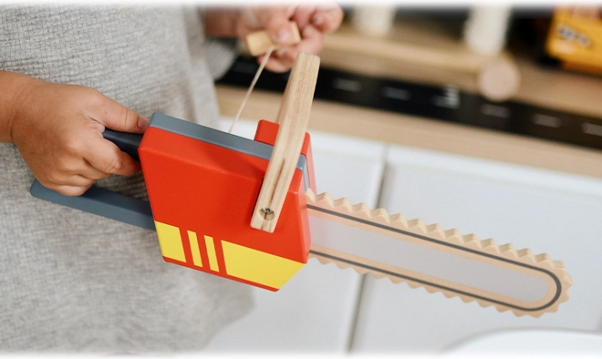 Tato kvalitní dětská motorová pila ze dřeva kombinuje odolné zpracování a bezpečný design pro každodenní hraní. Výrazné červené a žluté prvky s realistickým tvarem pily podněcují fantazii a rozvíjejí rolovou hru i jemnou motoriku.