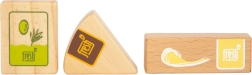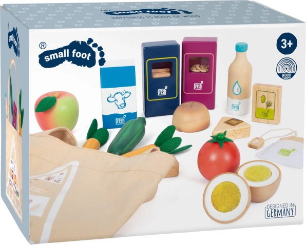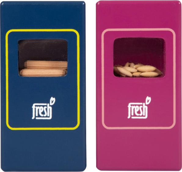 Sada vegetariánských potravin Fresh přináší dětem vše, co potřebují pro kreativní kuchařské a obchodní hry. Dřevěné kousky jako mléko, máslo, sýr, olej, vejce, rýže, těstoviny, pečivo, jablko, rajče, okurka a mrkev doplňuje láhev vody a čajový sáček. Realistické detaily, včetně průzoru u balení rýže a těstovin (při zatřesení vydávají zvuk), zvyšují atraktivitu i autenticitu hry.