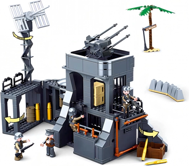 Vytvořte realistický vojenský scénář s pevností, strážní věží, radarem, člunem i motorkou. Sada přináší plynulé herní prvky včetně otočných děl, pohyblivých částí a bohatého příslušenství. Díky kompatibilitě s dalšími stavebnicemi snadno rozšíříte svoji armádní sbírku.