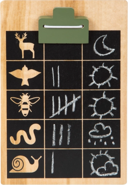 - Desku s klipem pro zapisování a dokumentaci nových objevů.
