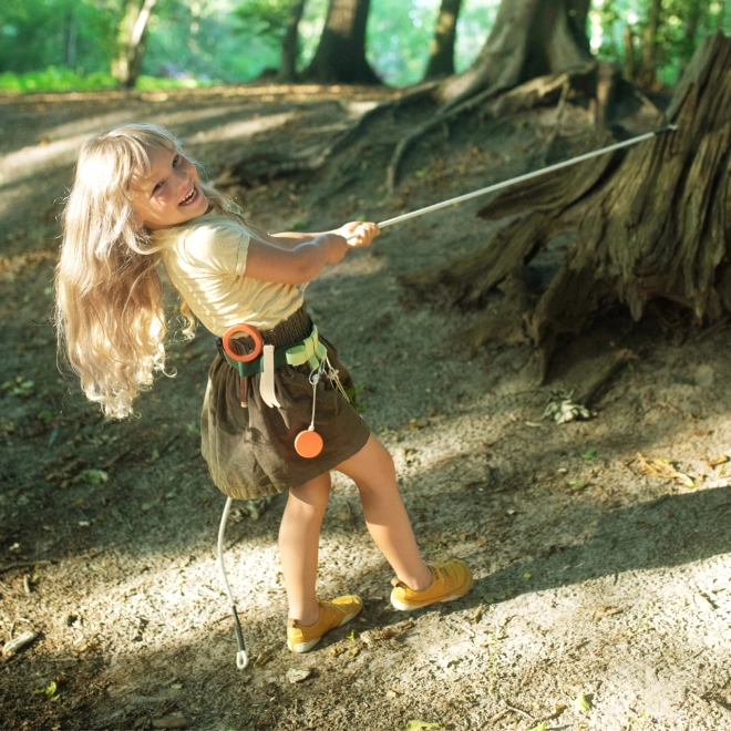 Vydejte se na nezapomenutelná dobrodružství s opaskem plným vybavení. Děti budou nadšeny odolným pásem, který zahrnuje dřevěnou píšťalku, lupu, pinzetu, kompas, lano a textilní pytlík. Vše je snadno připevnitelné pomocí oček a karabin.