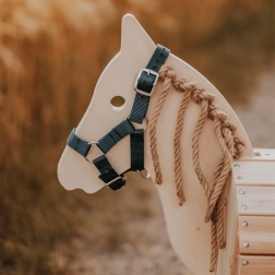 Dětský dřevěný kůň je vyroben z odolného neošetřeného dřeva, které lze dle potřeby ošetřit ochranným lakem. Výška hřbetu koně je 50 cm, což umožňuje snadný přístup i menším dětem. Kůň stojí na stabilních nohách, díky čemuž je bezpečný při hře doma i venku. Součástí balení je ohlávka, ke které lze připojit vodící lano pro větší interakci při hře. Dřevěný kůň podporuje rozvoj představivosti a jemné motoriky dětí díky sisalové hřívě a ohonu, které mohou splétat a česat.
