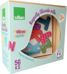 Objevte zábavný svět učení s dřevěnými magnetkami Vilac. Jasné a výrazné barvy a originální vzory činí každé písmeno snadno rozpoznatelným a podporují dětskou tvořivost: