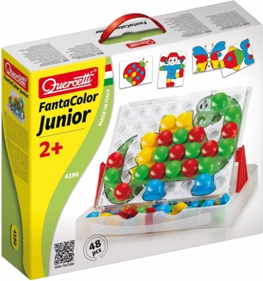 Objevte kreativní mozaiku QUERCETTI FANTACOLOR JUNIOR, která rozvíjí dětskou fantazii i jemnou motoriku. Díky velkým kloboučkům se dětem snadno manipuluje, praktický kufřík drží vše pohromadě a 8 oboustranných předloh inspiruje k tvoření. Hračka podporuje rozpoznávání barev, koordinaci oko–ruka, soustředění a trpělivost.