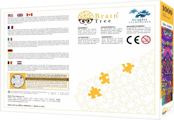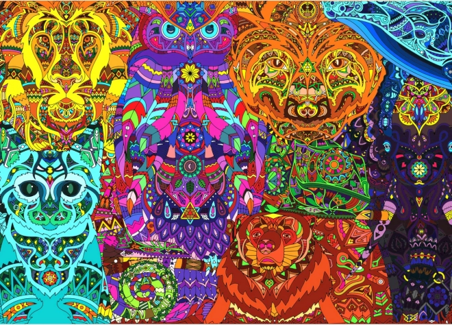 Puzzle BRAIN TREE Kmenová zvířata přinášejí vizuálně strhující motiv plný barev a detailů, který vynikne díky prémiovému tisku a matnému povrchu. Každý dílek je unikátně řezaný, což dělá skládání zábavnějším a překvapivějším než u klasických mřížkových střihů.