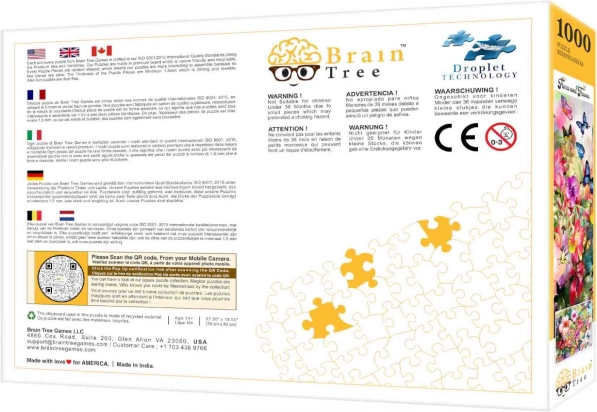 Objevte prémiové puzzle Brain Tree s motivem květin a motýlů, které zaujmou matnou povrchovou úpravou, prvotřídním potiskem a unikátními náhodnými tvary dílků. Každý dílek je jedinečný, příjemný na dotek a vysoce odolný proti otěru, takže si skládání užijete znovu a znovu. V balení nechybí plakát, kartonové přihrádky, stojan na víko krabice a uzavíratelný ochranný sáček pro bezpečné uložení.