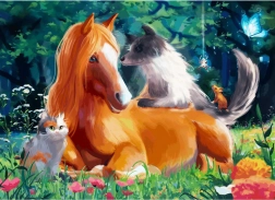 • Součástí balení je plakát 52×30 cm s motivem Shledání zvířat