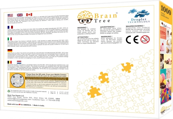V balení najdete vše, co potřebujete pro pohodlné skládání: plakát ve stejné kvalitě jako obrázek na puzzle, několik kartonových přihrádek pro třídění, stojan na víko krabice pro lepší přehled a u sady 1000 dílků také odolný zip sáček na bezpečné uložení dílků.