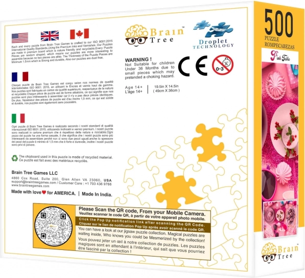Objevte prémiová puzzle Brain Tree s motivem „Růžově prostřeno“ o 500 dílcích. Užijte si matnou povrchovou úpravu pro dokonalou viditelnost detailů, náhodně řezané dílky pro větší zábavu a odolný tisk, který vydrží opakované skládání. Součástí balení je plakát, kartonové přihrádky pro třídění a stojan na víko krabice pro pohodlné nahlížení na předlohu.