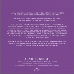 Motiv vznikl z astrofotografií Marcella Julie Pace, pořízených na různých místech Itálie během deseti let. Každý snímek ukazuje, jak se barvy úplňku mění – od červené a žluté při obzoru po vzácné modré tóny způsobené prachovými částicemi v atmosféře.