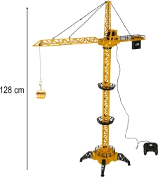 Tento žluto‑černý RC jeřáb je skvělou volbou pro děti, které milují stavební stroje. Model určený k domácí montáži nabízí realistické ovládání směru otáčení ramene, spouštění a zvedání nákladu do přiložené vaničky. O zábavnou atmosféru se starají světelné a zvukové efekty, díky nimž hra působí jako na skutečném staveništi.