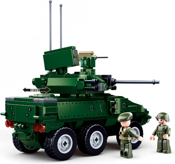 Detailní provedení obrněného vozidla 6x6 s otočnou věží a autentickými prvky zaručuje skvělý vzhled i hratelnost.