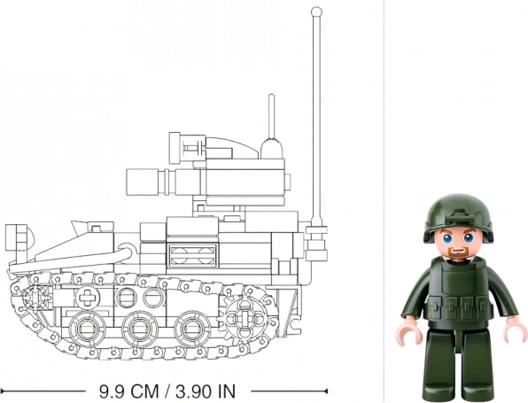 - Kostky pro sestavení 2 variant tanku, 1 figurka, návod