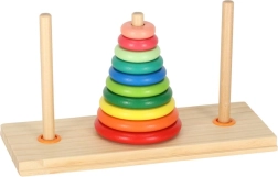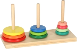 Tato nadčasová logická hra trénuje trpělivost a soustředění: úkolem je přenést všechny kotouče z první tyče na poslední tak, aby byly opět seřazeny od největšího po nejmenší – vždy lze přesunout pouze jeden kotouč a menší kotouč nesmí ležet na menším. Zní to jednoduše, ale prověří děti i dospělé.