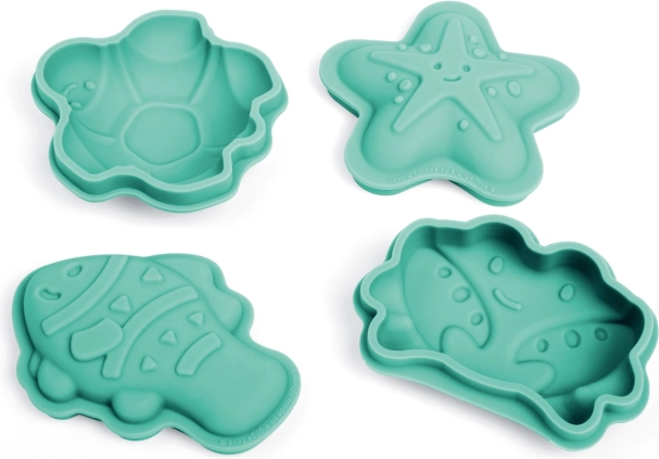 Sada obsahuje čtyři různé silikonové formy ve tvaru kraba, ryby, hvězdice a želvy pro maximální kreativitu vašich dětí.