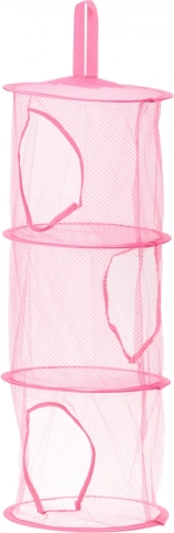 Tento závěsný organizér ve světle růžové barvě nabízí tři prostorné segmenty z pevné síťoviny, které umožňují rychle vidět, co je uvnitř. Kovový rám zajišťuje stabilitu, zatímco lehký polyester usnadňuje manipulaci i přenášení.