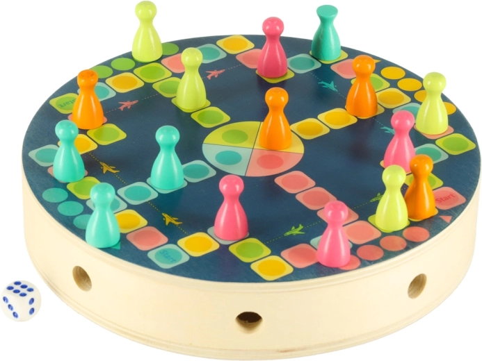 Součástí je také jednoduchá desková hra s pěšáky a kostkou pro nácvik počítání a první pravidla hry. Všechny díly mají hladké hrany a jsou vyrobeny z kvalitního dřeva s odolnými barvami, takže jsou příjemné do ruky a bezpečné pro každodenní hraní.