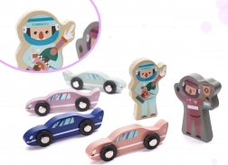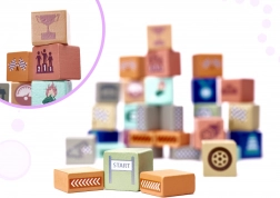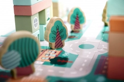 Každé město potřebuje ulice a auta – a tento set obsahuje puzzle, které když jsou složeny, vytvoří hrací plochu s tratí. Najdete zde různé prvky jako budovy, postavy a vozidla. Kostky jsou vyvedeny v pastelových barvách, což nejen podněcuje zrakové vnímání dítěte, ale také jeho logické a netradiční myšlení.