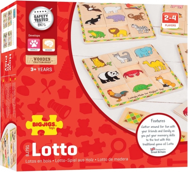 Bigjigs Toys dřevěné zvířecí loto nabízí dětem možnost pobavit se a zároveň rozvíjet důležité schopnosti. Tato hra zahrnuje 4 hrací karty a přiřazovací dílky s roztomilými zvířecími ilustracemi, které pomáhají dětem rozvíjet logické myšlení a trpělivost.