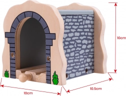 Dřevěný železniční tunel Kamenná stavba přináší atraktivní a realistický design, připomínající skutečný tunel. Je kompatibilní se všemi ostatními dřevěnými vláčkodráhami na trhu, což umožňuje kombinaci a rozšíření her/aktivit.