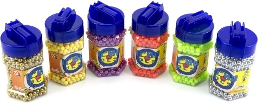 Tato sada obsahuje 1200 kuliček do kuličkové pistole v šesti různých barvách, což umožňuje snadné rozlišení a kreativní hraní. Uzavíratelná plastová láhev zajišťuje bezpečné uskladnění a jednoduché dávkování kuliček, aby vždy byly připraveny k použití.