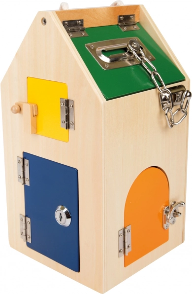 U zámek, cylindrický zámek, řetízek, panty a další mechanismy učí děti trpělivosti, logice a přesným pohybům prstů.