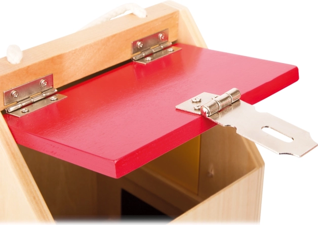 Domeček je vyroben z kvalitního dřeva v kombinaci s pevnými kovovými částmi, takže vydrží i intenzivní používání. Díky kompaktním rozměrům a praktickému držadlu je snadno přenosný – ideální na cesty, do školky i dětského pokoje. Barevné prvky lákají k objevování a podporují rozpoznávání barev.