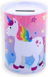 Kovová pokladnička s motivem jednorožce je nejen praktickým pomocníkem pro spoření, ale také krásným dekorativním prvkem dětského pokoje. Její barevné ilustrace jednorožců, duhy a hvězd potěší každé dítě.