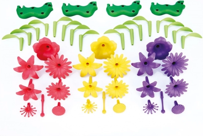 Díky zaměnitelným dílkům mohou děti vytvářet nekonečné kombinace květů, stonků a listů. Každé aranžmá je jedinečné a podporuje fantazii i jemnou motoriku.