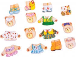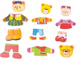 Oblékejte pana Medvěda, paní Medvědici a jejich dvě medvíďata do nejrůznějších outfitů a objevujte emoce pomocí výměnných hlaviček s různými výrazy. Dřevěné dílky jsou příjemné do ruky, snadno se skládají a podporují kreativní hru i učení formou zábavy.