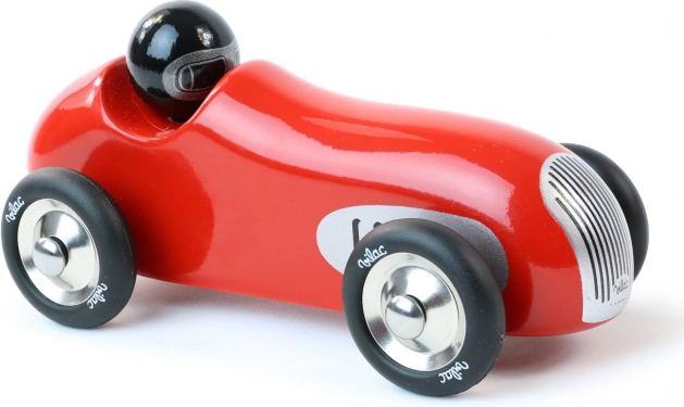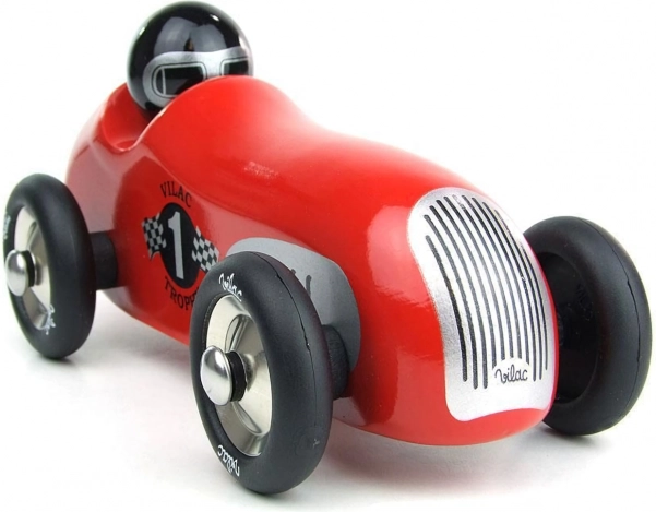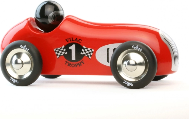 Objevte kouzlo červeného historického závodního auta od značky Vilac. Toto auto je vyrobeno z lakovaného dřeva s kovovými detaily a pogumovanými koly, což zajišťuje plynulý pohyb. Je navrženo jak pro hraní, tak jako dekorativní prvek v dětských i dospělých interiérech.