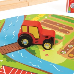Tato dřevěná vláčkodráha s venkovskou cestou je perfektním propojením vláčkodráhy a autodráhy, které napodobují skutečný dopravní svět. Díky mostům a přejezdům se vaše děti dostanou do světa plného zábavných dobrodružství. Vše je doplněno místními doplňky jako je farma, budovy a stromy, které zkrášlují okolí.