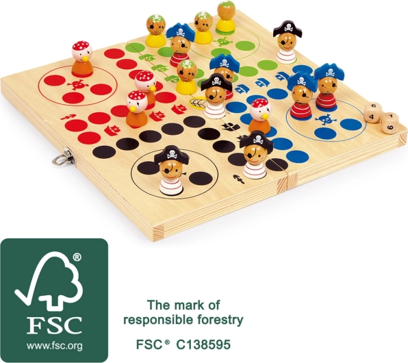 Hra je vyrobena z 100% FSC dřeva, což zaručuje ekologické a odpovědné lesní hospodaření.