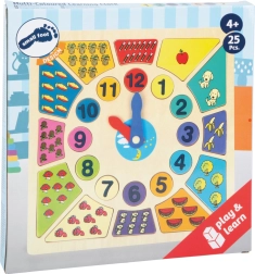 - Dřevěné vkládací výukové puzzle s hodinami
