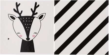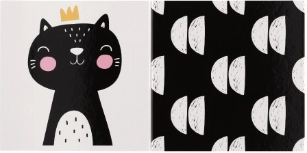 Černobílé vzory a siluety zvířátek přirozeně poutají pozornost novorozence a podporují vývoj zraku.