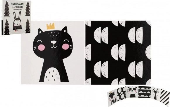 Kontrastní leporelo je navrženo pro nejmenší děti, které nejlépe reagují na ostré kontrasty černé a bílé. Roztomilé motivy lesních zvířátek a jednoduché vzory pomáhají rozvíjet soustředění a zrakové vnímání už od prvních týdnů života.