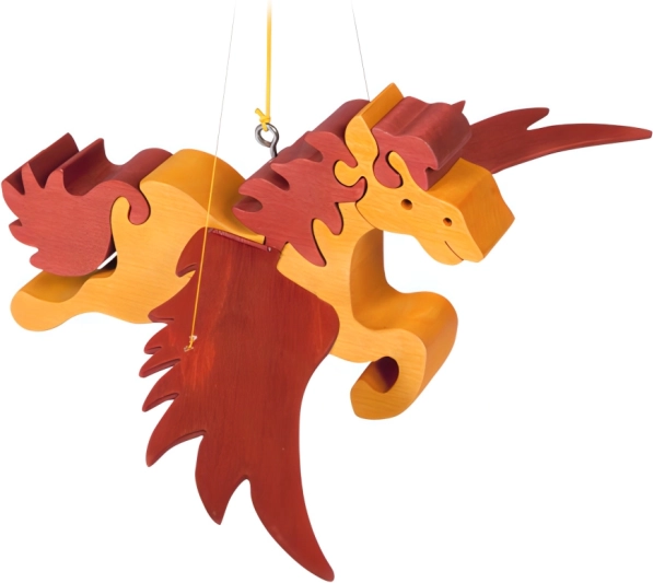 Okouzlující dřevěná dekorace do dětského pokoje – létající kůň, který po zatáhnutí za provázek začne „mávat křídly“. Ručně vyhlazené dřevo, bezpečné provedení a snadné zavěšení dělají z této závěsné dekorace půvabný doplněk nad postýlku či do herního koutku.