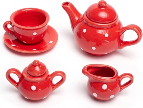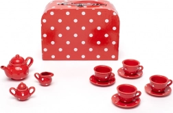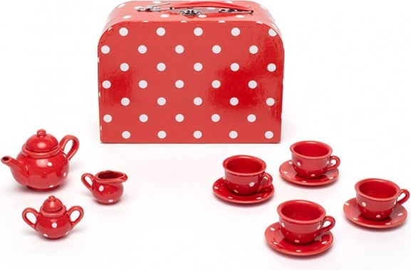 Uspořádejte dokonalý dětský čajový dýchánek s tímto kouzelným setem v červené barvě s bílými puntíky. Souprava obsahuje vše, co malí hostitelé potřebují – konvici, 4 šálky s podšálky, cukřenku a džbánek na mléko. Vše se po hraní snadno uloží do pevného kufříku, takže je set ideální i na cesty. Vyrobeno z kvalitních materiálů a v souladu s evropskými bezpečnostními normami.