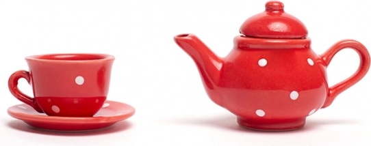 Klasická červená s bílými puntíky zaujme na první pohled a dodá každému čajovému dýchánku kouzlo.