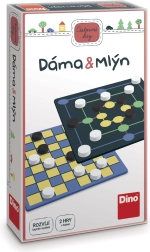 Užijte si klasické strategické hry kdekoliv na cestách. Kompaktní sada od značky Dino nabízí oboustranný herní plán pro dámu i mlýn, společné černé a bílé kameny a praktické balení do batohu. Skvěle zabaví děti i dospělé a rozvíjí logické myšlení, taktiku a trpělivost. Vyrobeno v ČR, držitel certifikace Bezpečná a kvalitní hračka.