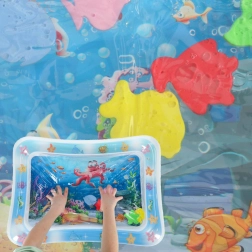 Pohyb vody a vodních živočichů uvnitř podložky je pro batolata vždy nekonečná zábava! Jednoduše podložku naplňte vzduchem a vodou podle svých představ, položte ji na podlahu a nekonečná zábava může začít! Podložka je také skvělým dárkem pro všechny děti od 3 měsíců.