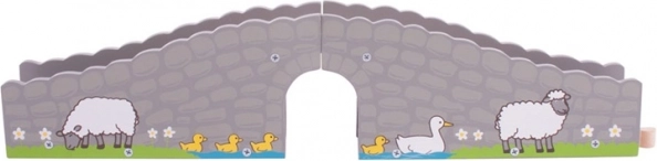 Navržen v šedé barvě, připomínající kamenný most s ilustrací farmářských zvířátek pro autentický zážitek.