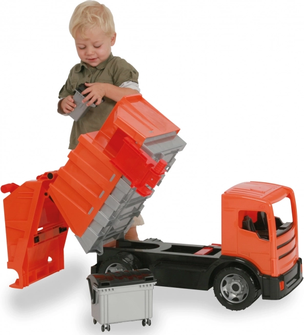 - Realistická hra: dva výklopné mechanismy (zadní a boční) + 2 odpadní koše